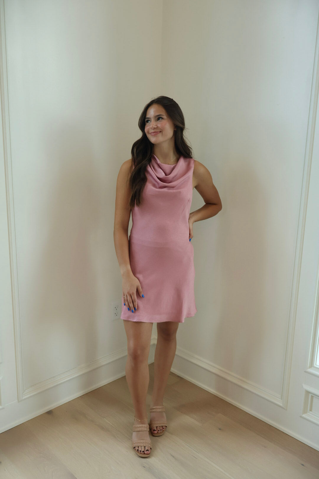 Elissa Satin Crowl Neck Mini Dress - Mauve
