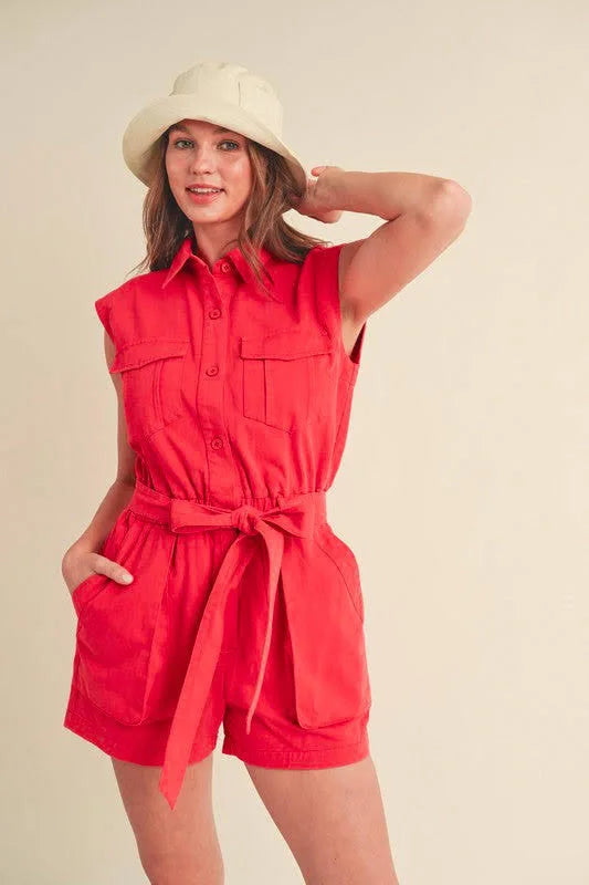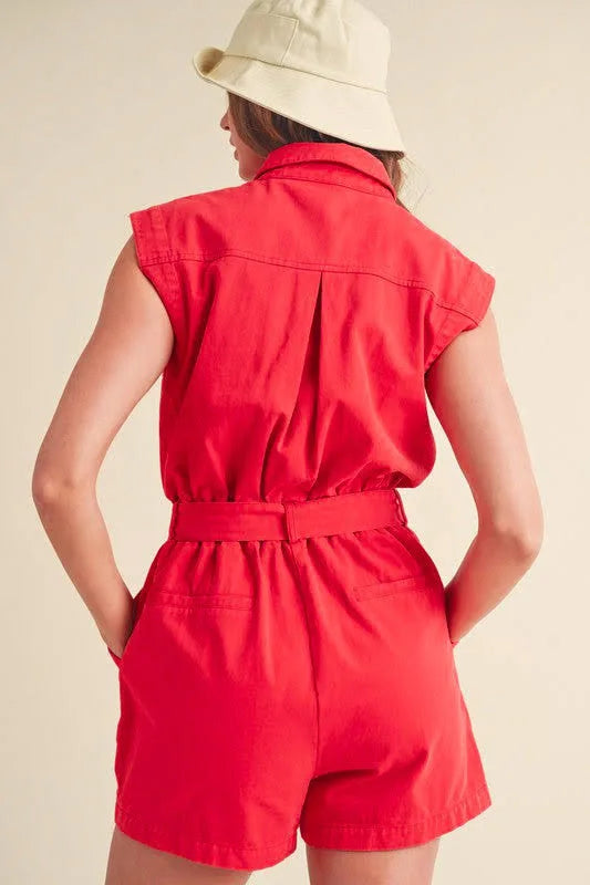 Denim Washed Red Romper