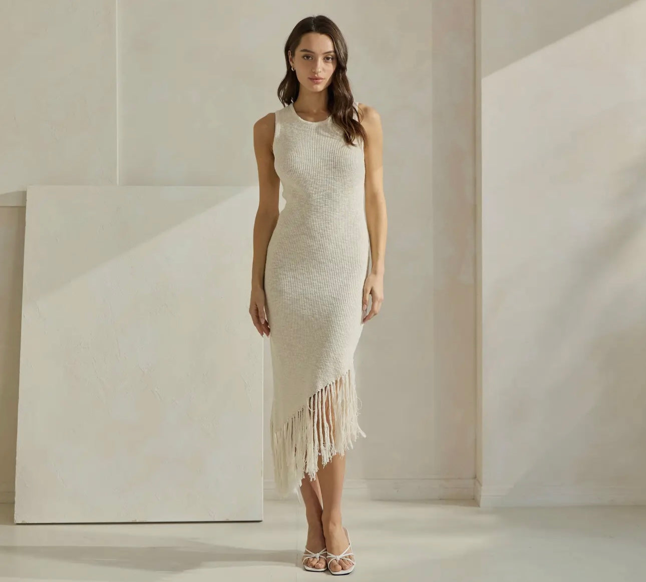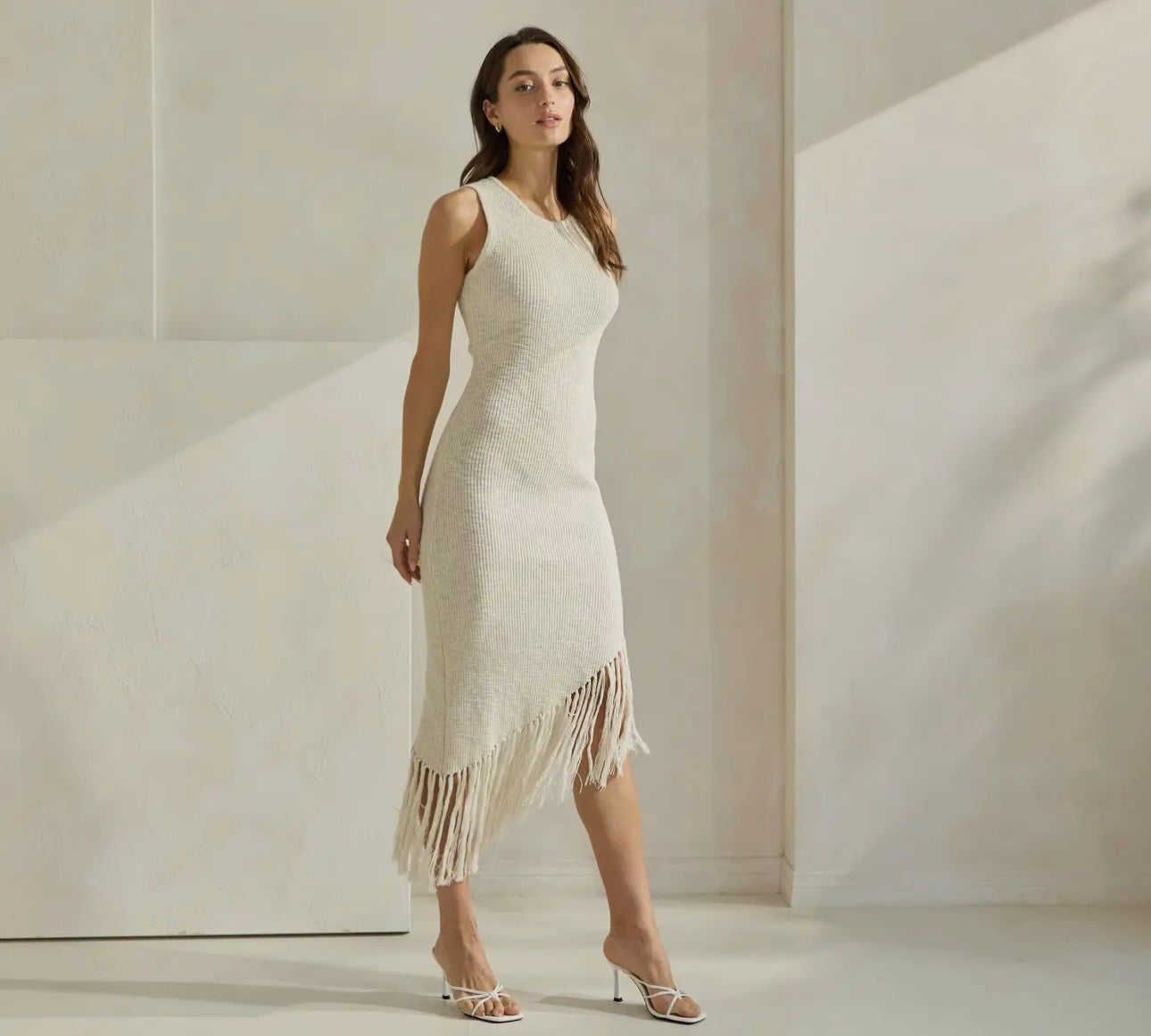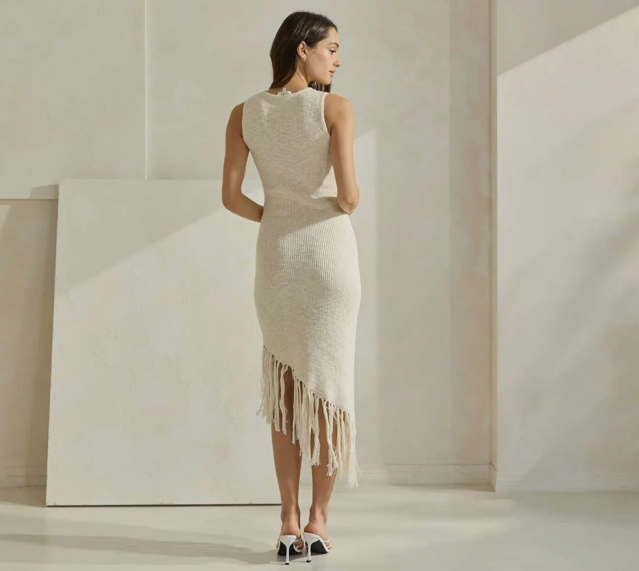 Sunset Soiree - Cream Fringe Trimmed Dress