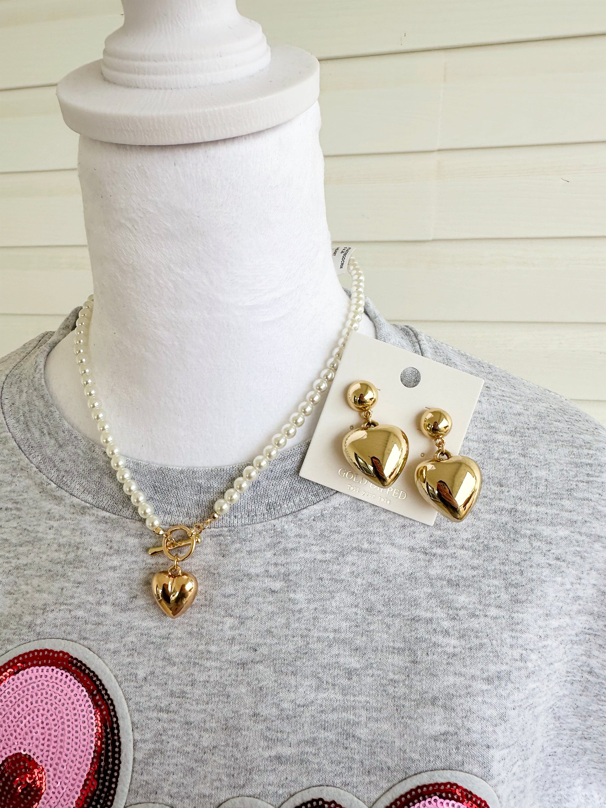 Add some love to your wardrobe with our Heart Drop Earrings in gold. These quirky and playful earrings will make a fun statement in any outfit. Perfect for date night or a night out with friends. (Note: may cause hearts to flutter!)