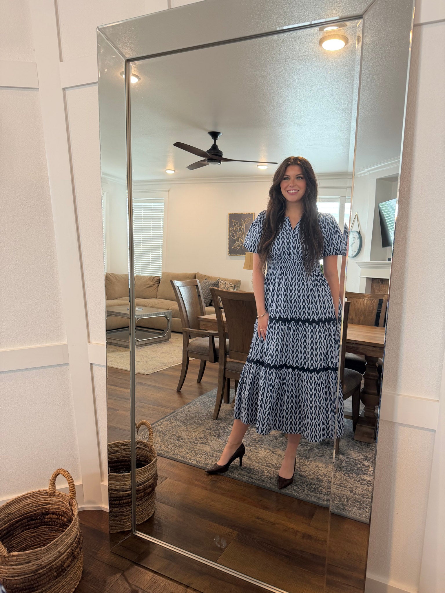 Navy/Blue Printed Puff Sleeve Midi Dress
