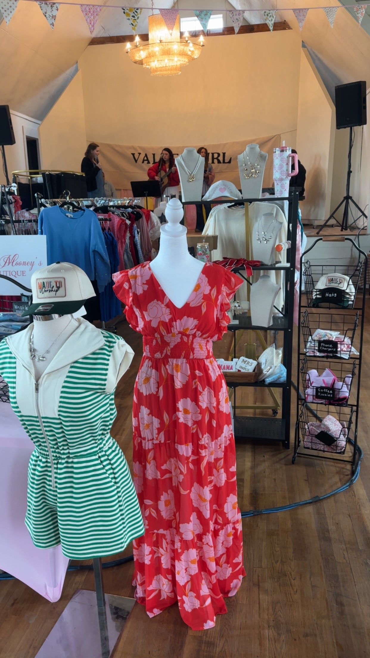 ruffled sleeve woven chiffon floral print tiered maxi dress with waist smocking and side pocket.