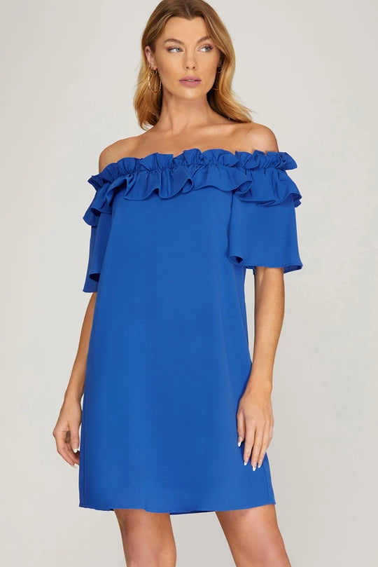 For The Frills Dress - Royal Blue