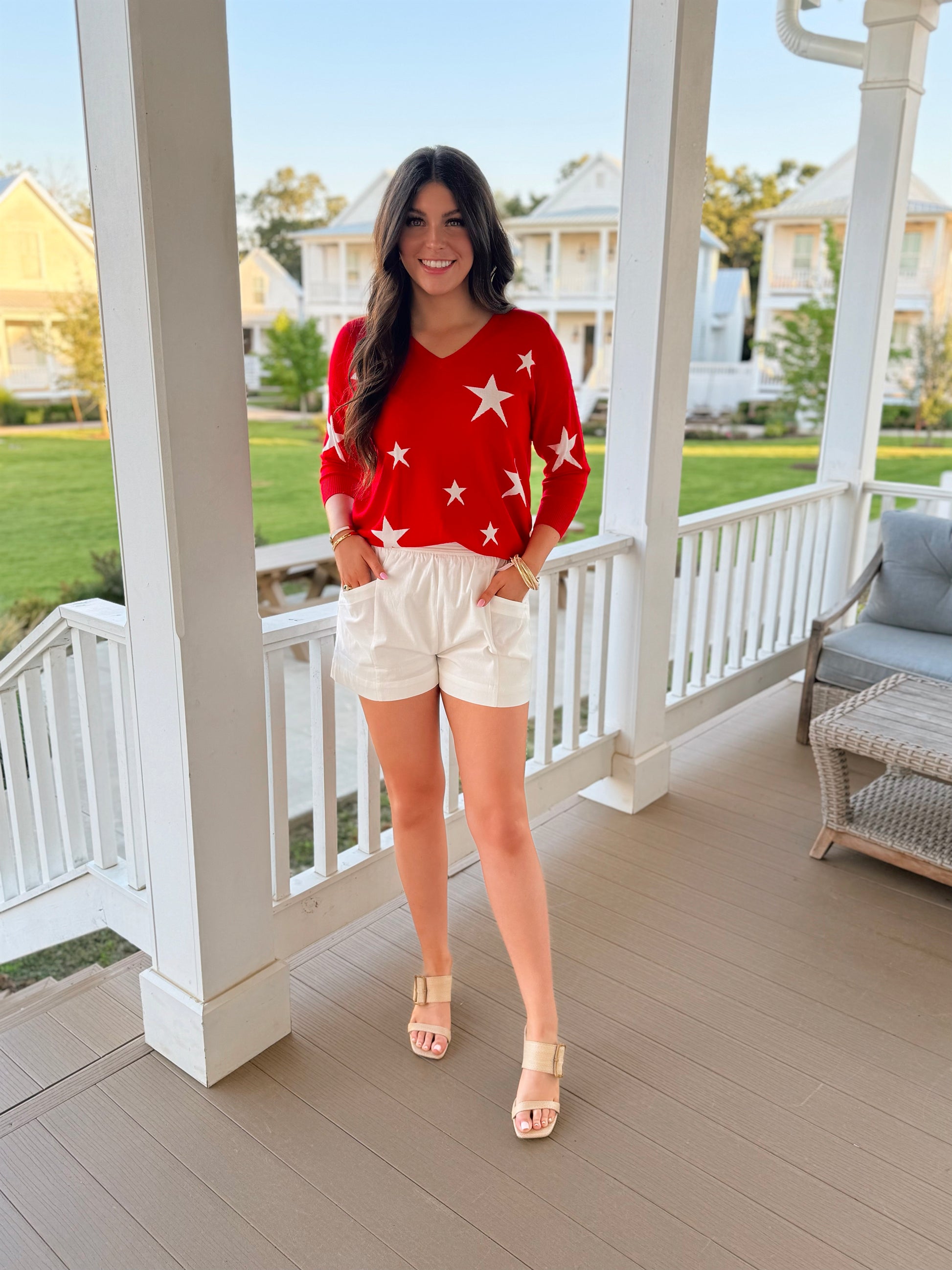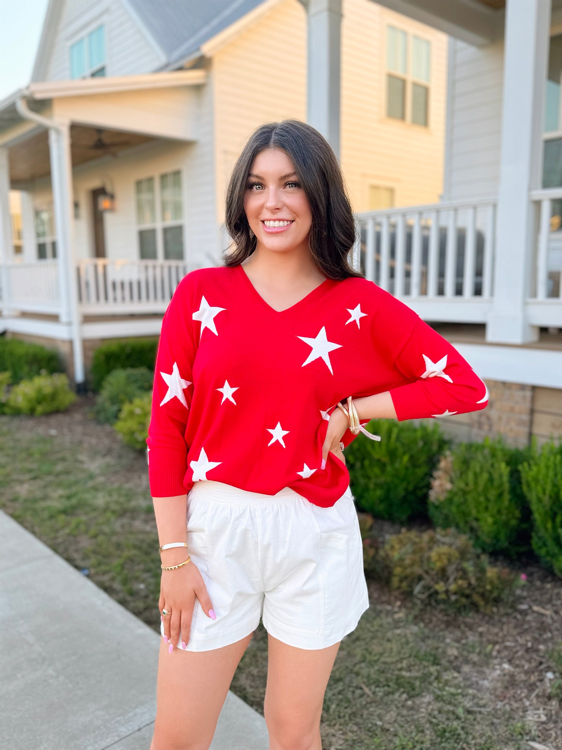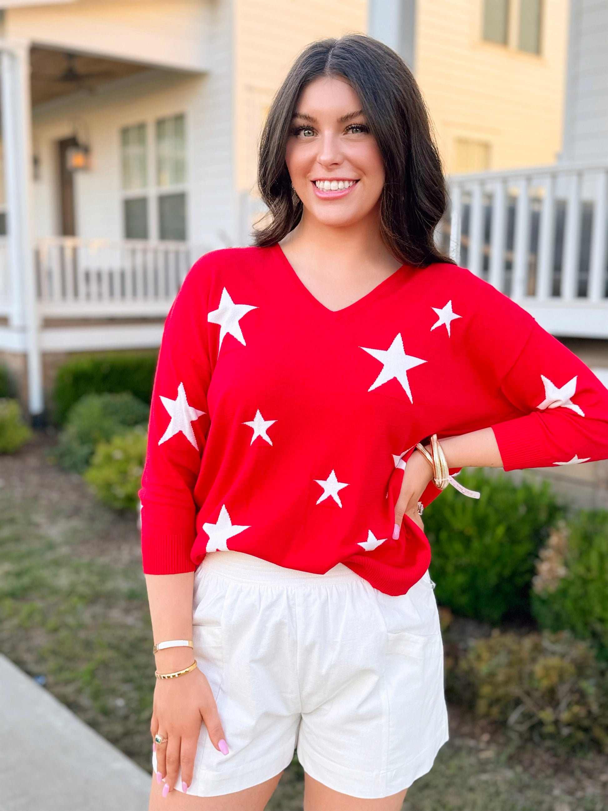 Star Sweater Top in Red