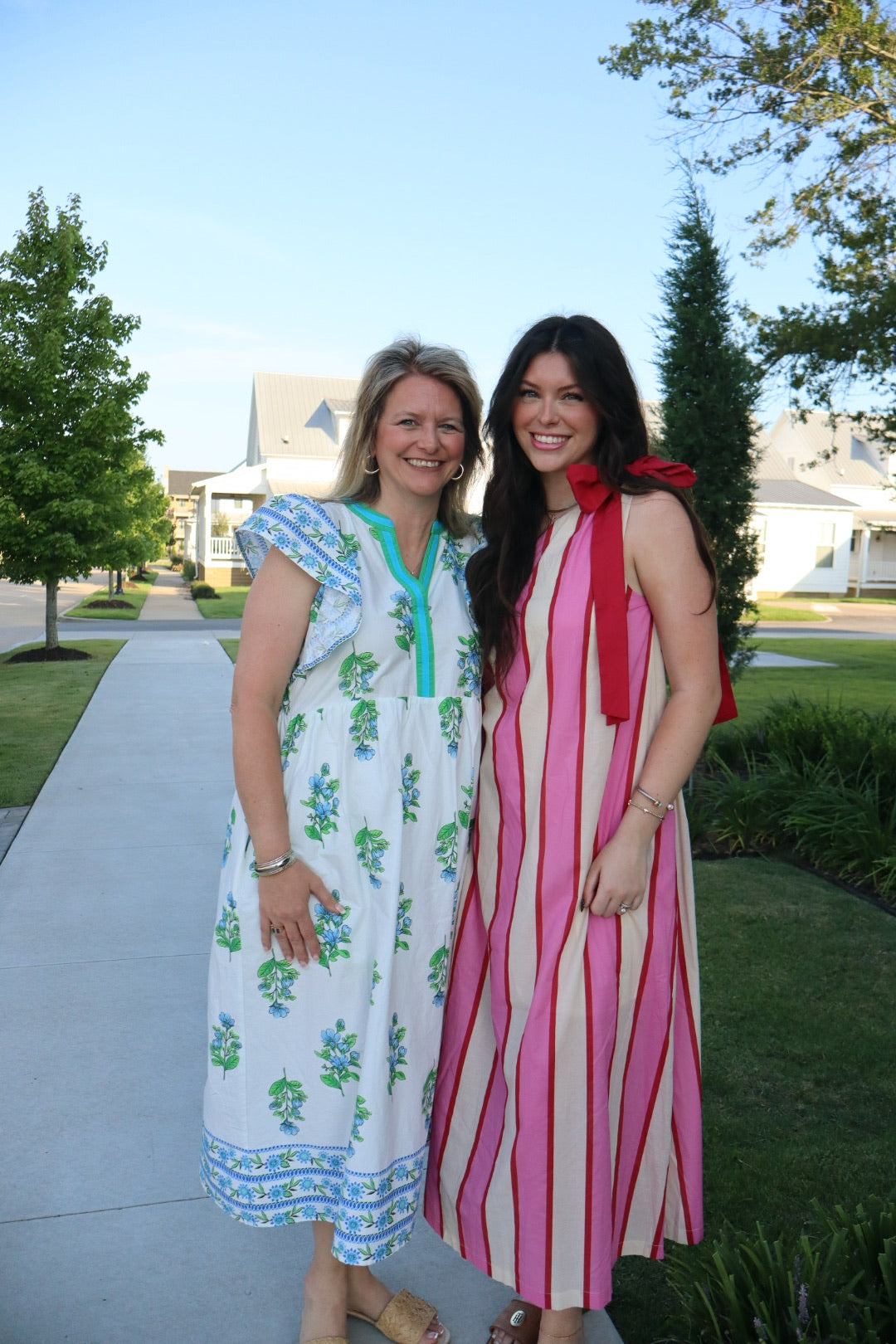 Get ready to turn heads with our Garden Club Dress! This fun and flirty dress features a beautiful green and blue floral print on a crisp white background. With flutter sleeves and a midi length, it's perfect for those warm summer days. This dress is lightweight and embodies a charming southern and grandmillennial vibe. Don't miss out on this must-have dress!